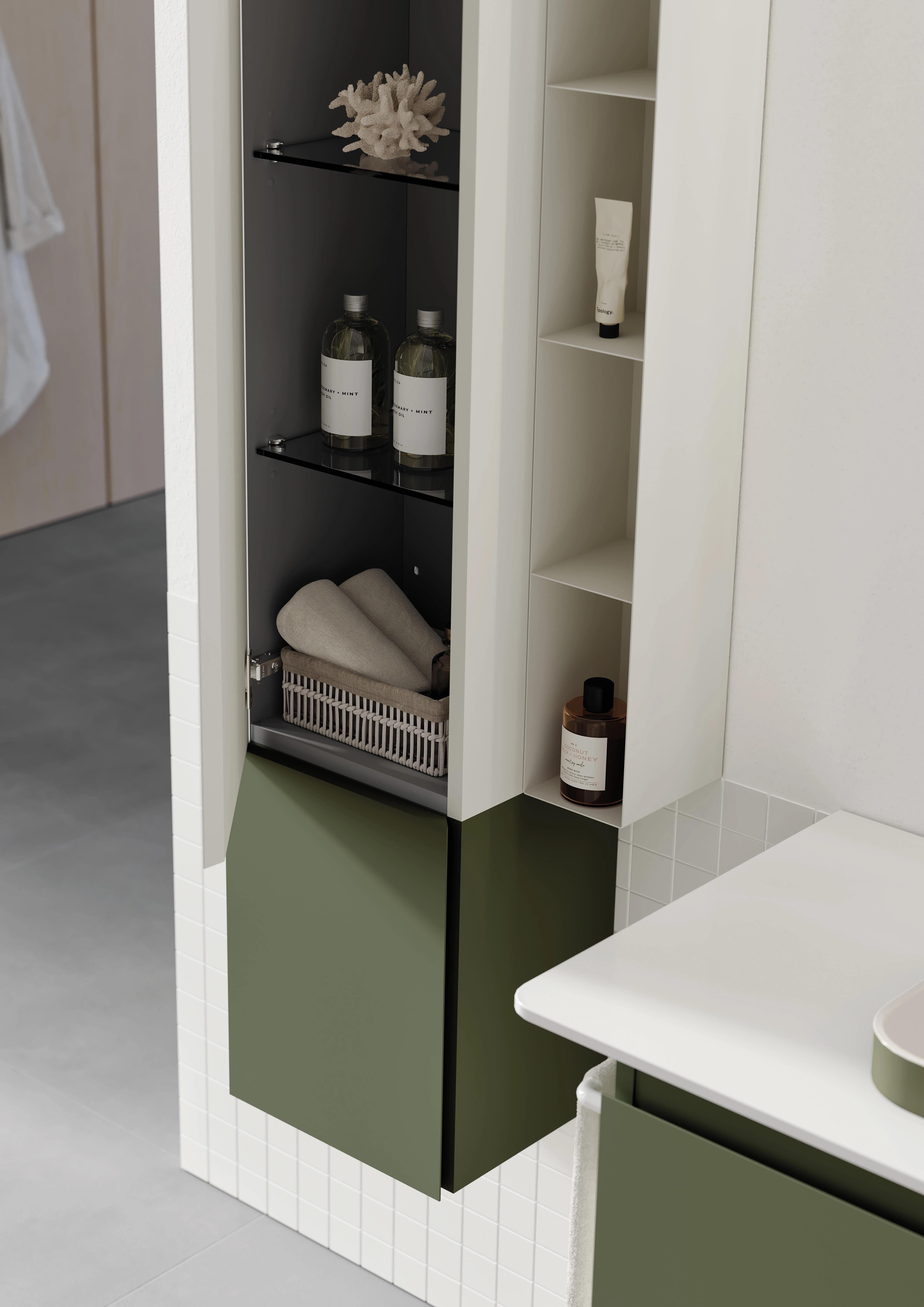 Orka Vico Boy Dolabı, farklı genişlik seçenekleri ve kişiselleştirilebilir modüler sistemiyle her banyoya uyum sağlar.