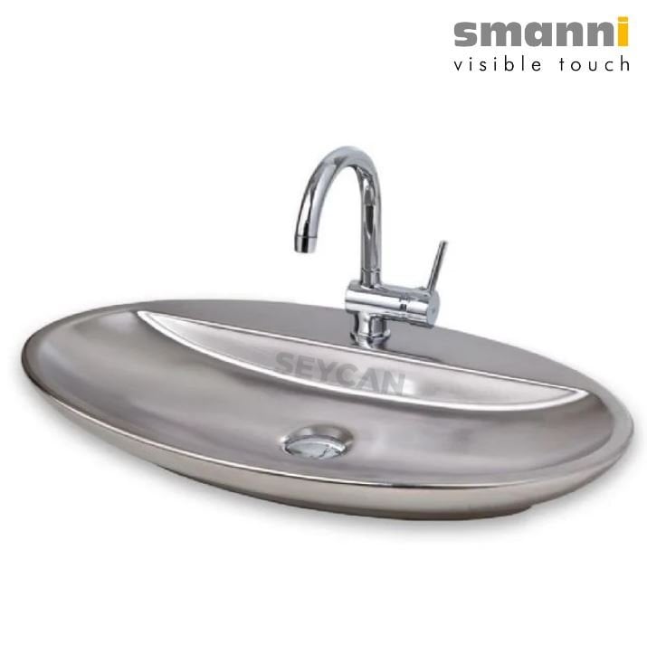 Smanni Sarin BD Mat Platin Oval Tezgah Üstü Lavabo